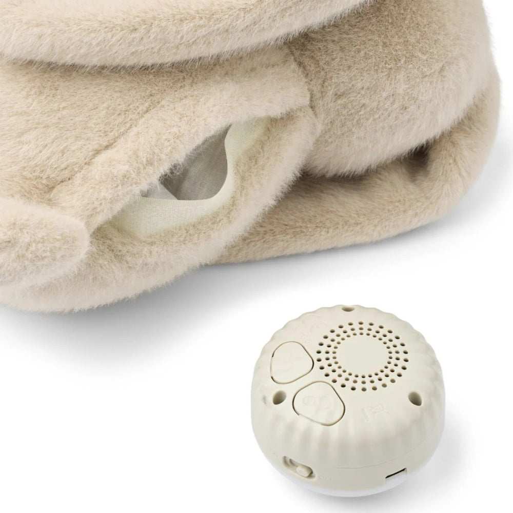 Iepurașul bâzâitor de la Liewood redă opt sunete calmante, cum ar fi zgomotul alb și roz, cântecul păsărilor sau sunetul valurilor, astfel încât este ușor de ajustat la nevoile bebelușului.