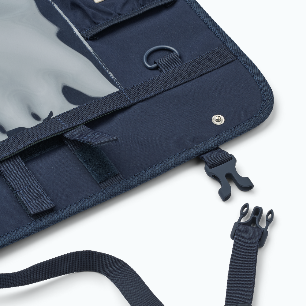 Fabricat din poliester durabil, 100% reciclat, acesta are mai multe buzunare și un buzunar mare, transparent, ideal pentru o tabletă în călătoriile mai lungi.