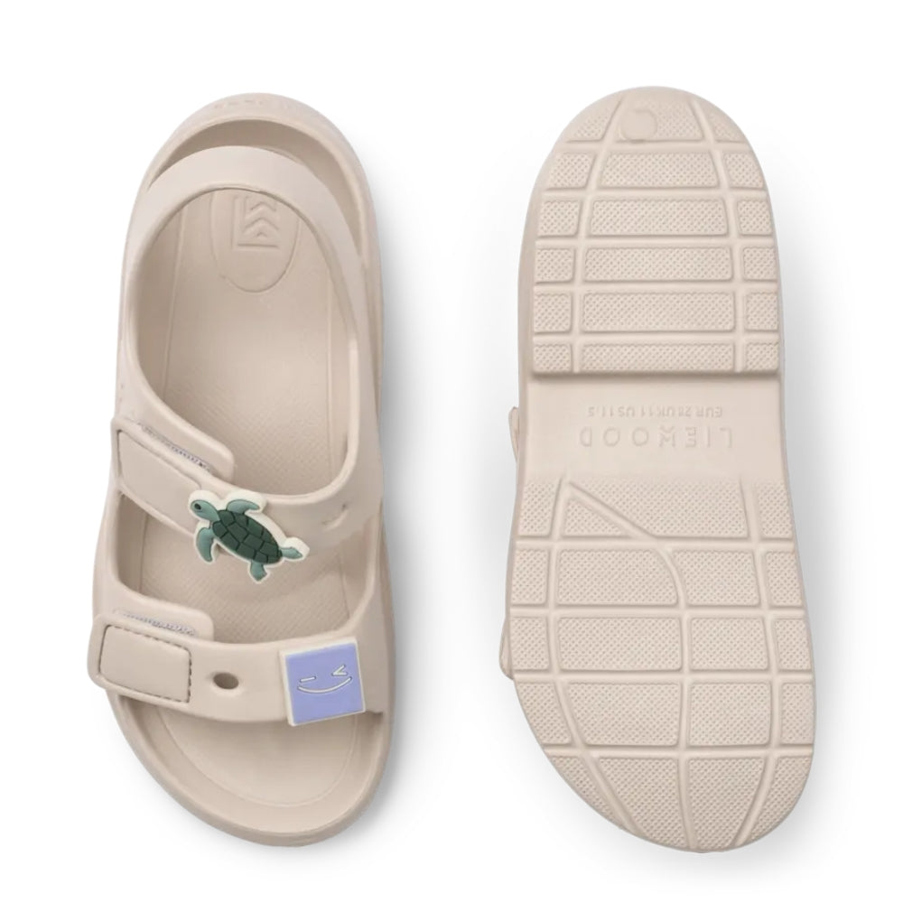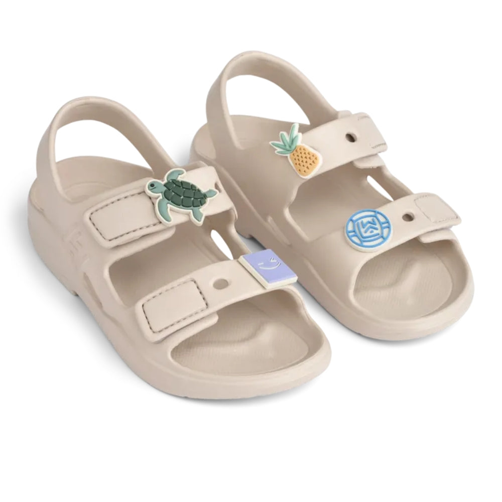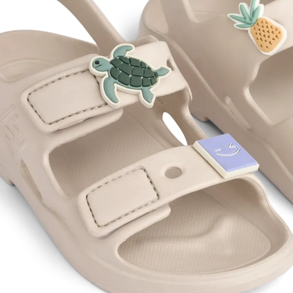 O caracteristică distinctivă este reprezentată de crampoanele decorative Liewood în forme jucăușe, care pot fi rearanjate după bunul plac pentru a da sandalelor un stil individual.