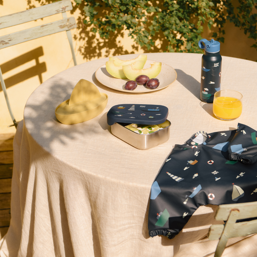 Utilizează 80% oțel inoxidabil 18/8 reciclat, ceea ce o face durabilă și reutilizabilă - perfectă pentru grădiniță, loc de joacă sau călătorie.
