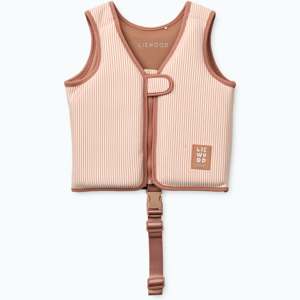 Designul elegant și culorile de vacanță ale modelului Liewood sunt ideale pentru piscină și plajă, iar vesta de înot se usucă rapid după joacă.