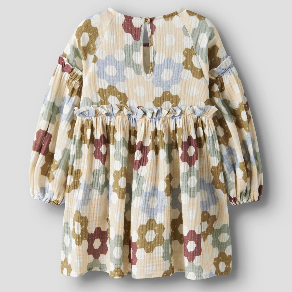 Rochia de fetiță Lil' Atelier a fost cusută din bumbac 100% organic, care garantează respirabilitate și siguranță chiar și pentru cea mai sensibilă piele.