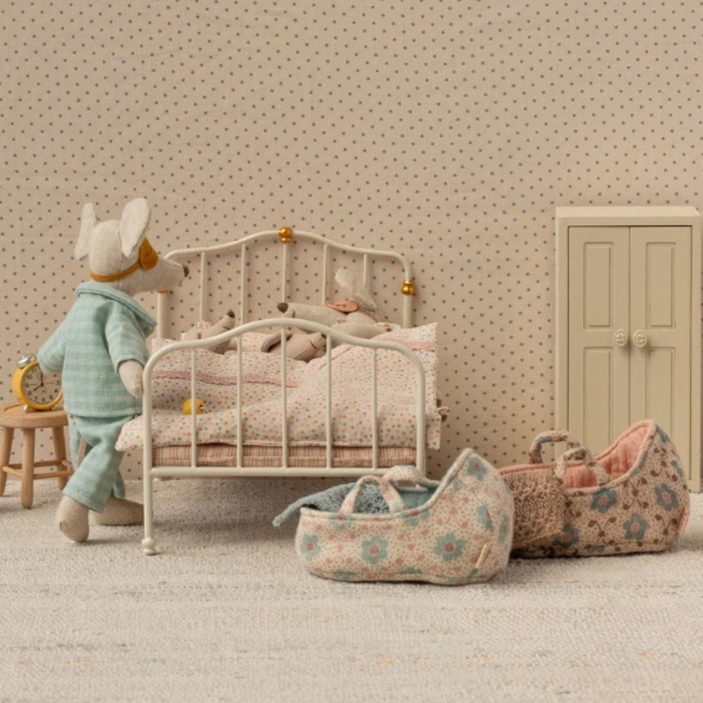 Coșul confortabil oferă micilor șoareci Maileg un loc confortabil și sigur pentru a dormi în orice moment al zilei.