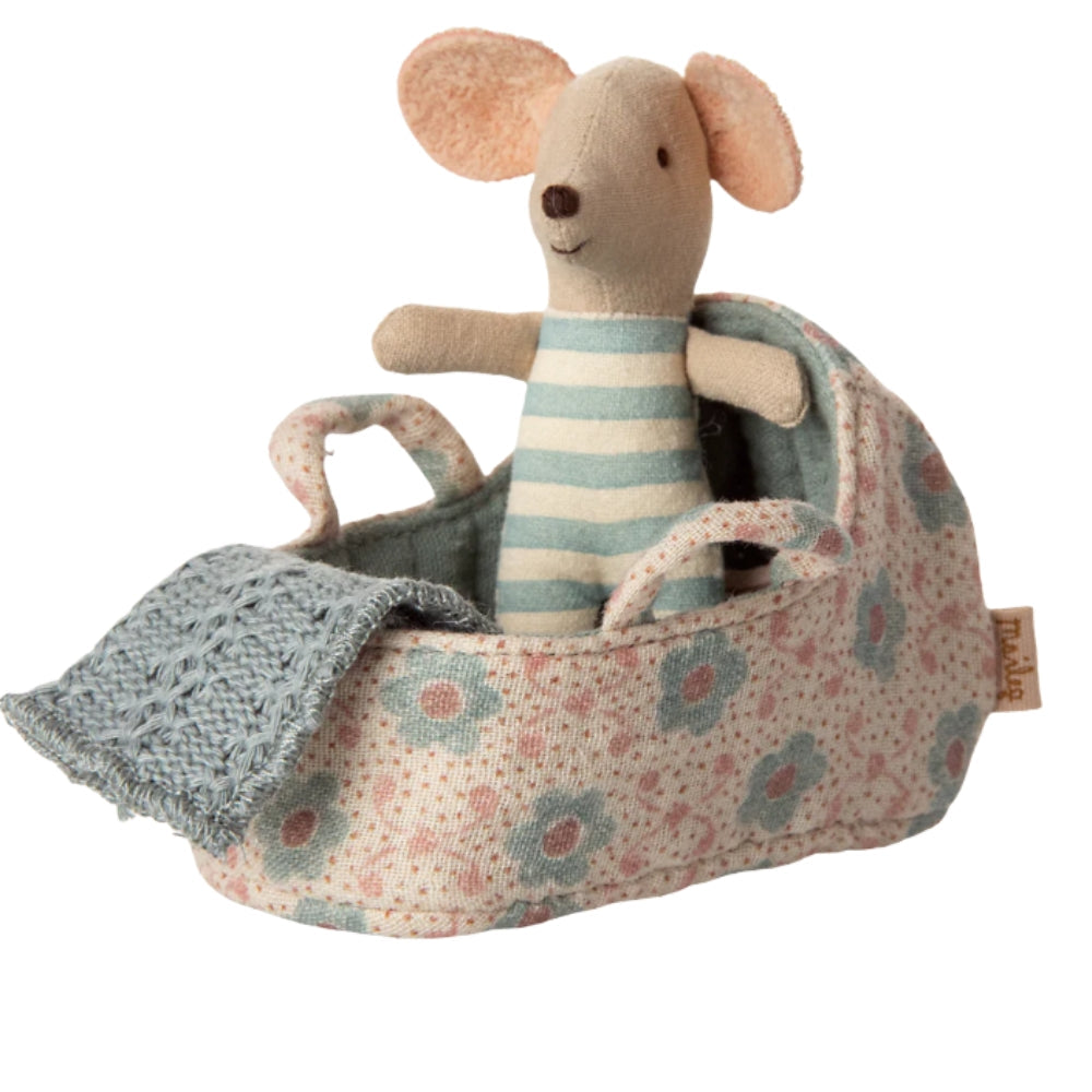 Coșul de transport pentru păpuși miniaturale de la Maileg este un accesoriu adorabil care îi va permite copilului dvs. să creeze scene imaginative în timpul jocului.
