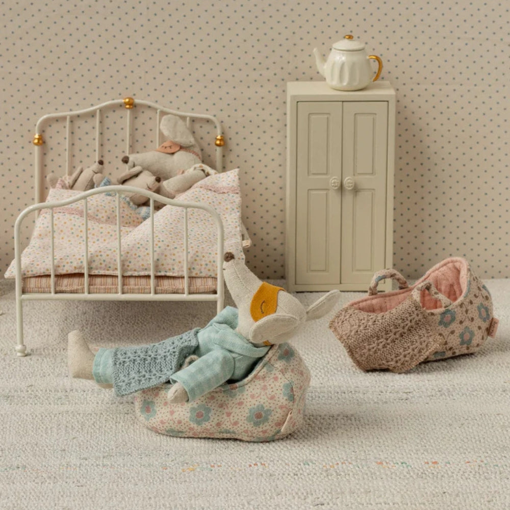Coșul confortabil oferă micilor șoareci Maileg un loc confortabil și sigur pentru a dormi în orice moment al zilei.