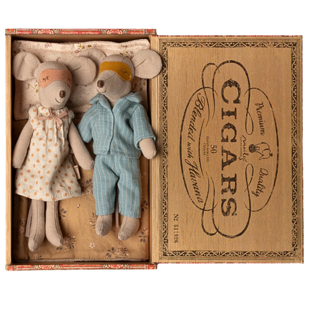 Maileg Șoareci într-o cutie de țigări Mamă și tată