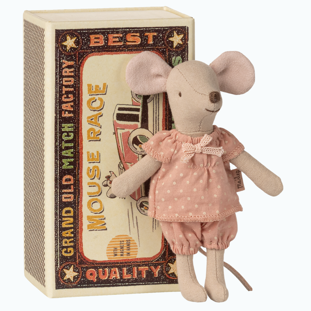 Maileg Soră mai mare șoarece într-o cutie de chibrituri