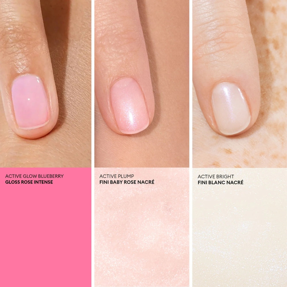 Setul include lacul de unghii Active™ Glow Blueberry, care oferă o strălucire ca de oglindă și conține 77,5% ingrediente derivate natural.