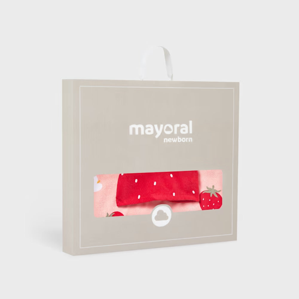 Modelul Mayoral se distinge prin culoarea roșie intensă și motivul de căpșuni și flori mici.