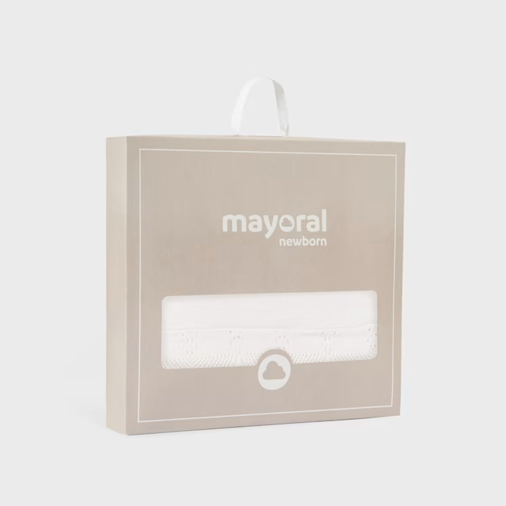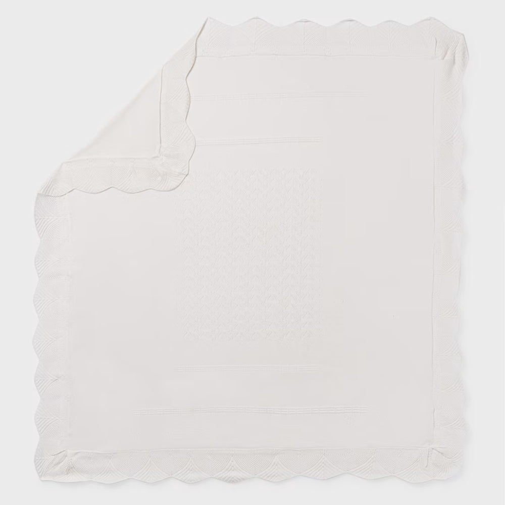 Pătura pentru bebeluși Mayoral este un accesoriu tricot moale de culoare crem, perfect pentru purtarea de zi cu zi.