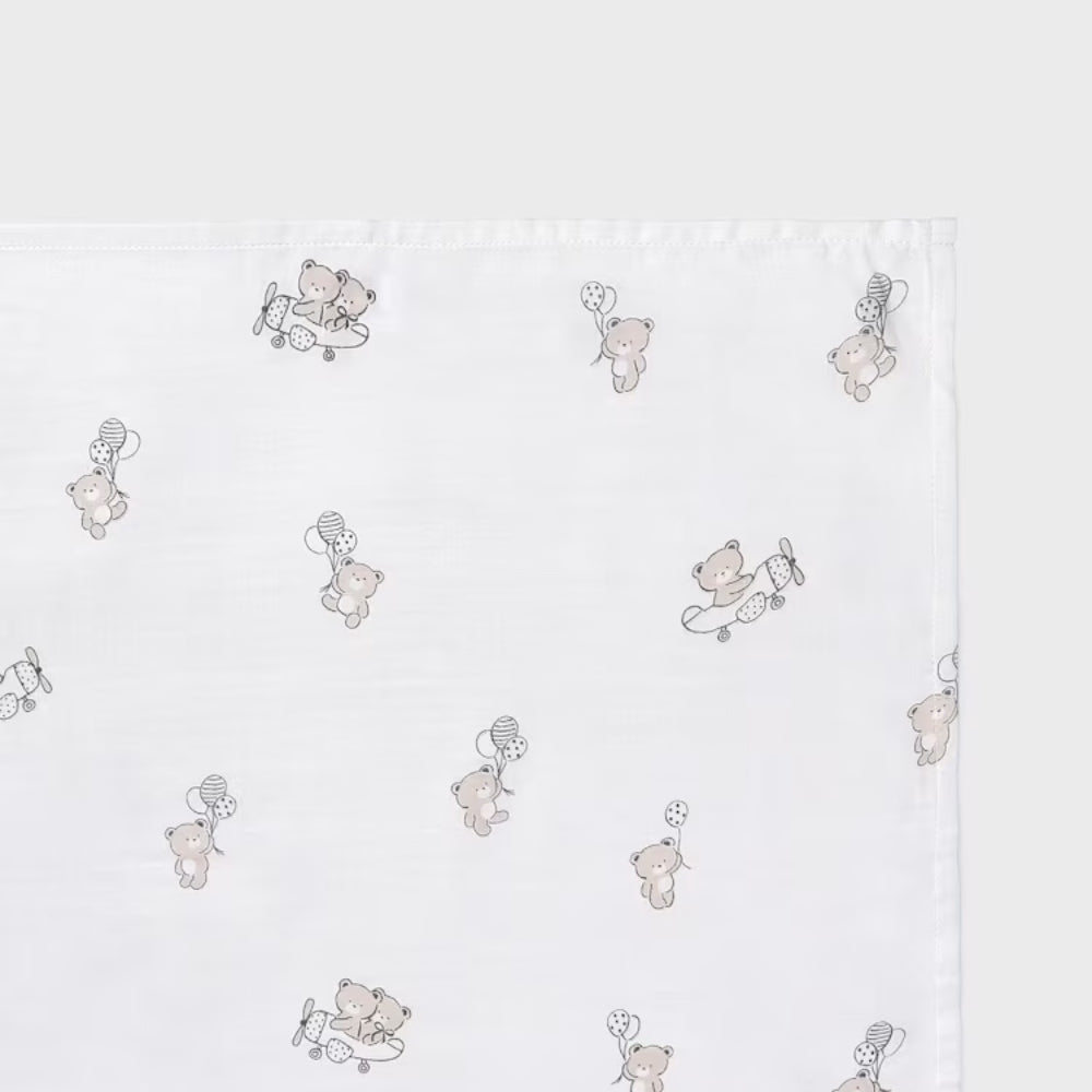 Fabricat din tifon moale, scutecul este perfect pentru hrănire, schimbare și ca o acoperire ușoară în zilele mai calde.