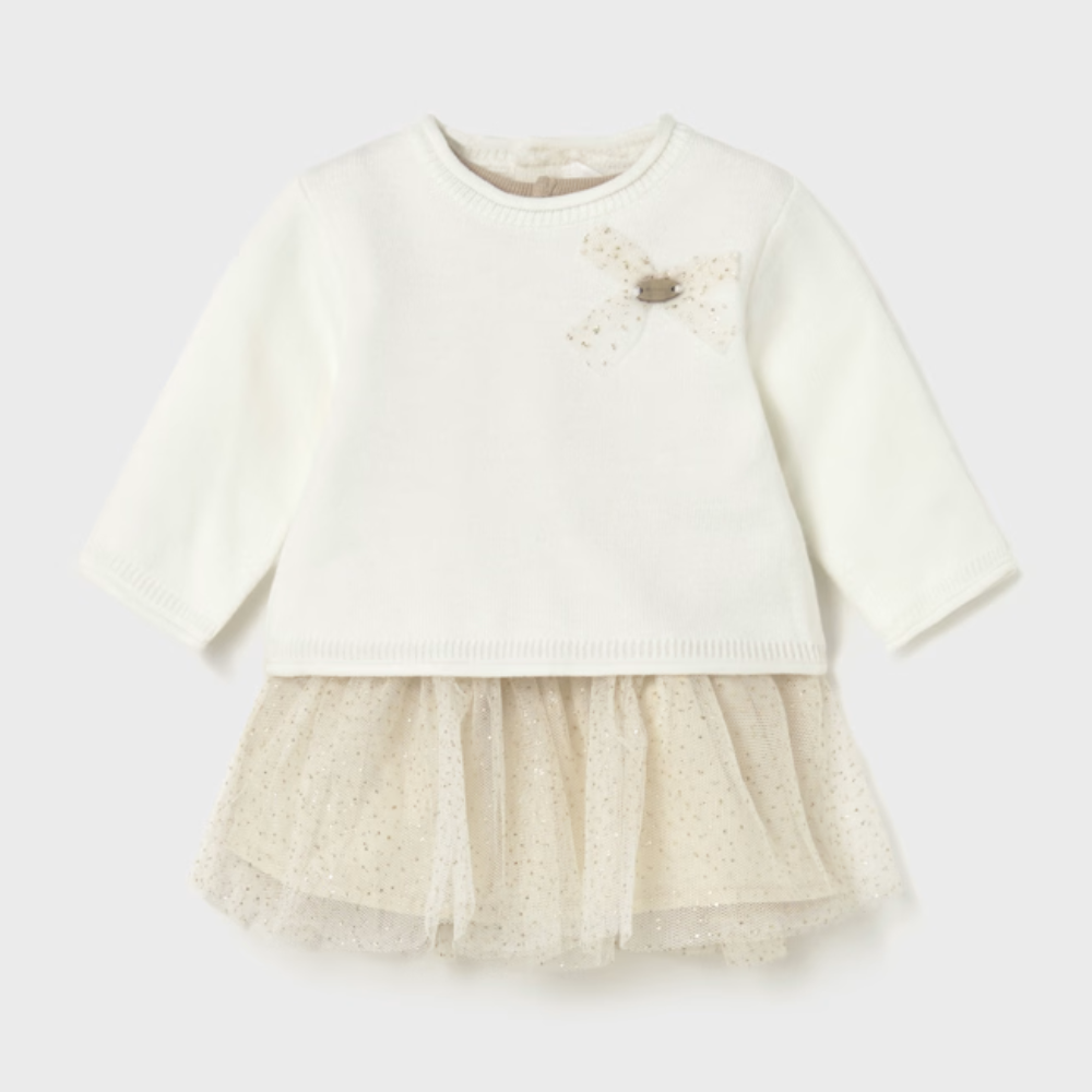 Mayoral Set nou-născut cu pulover și rochie Cream
