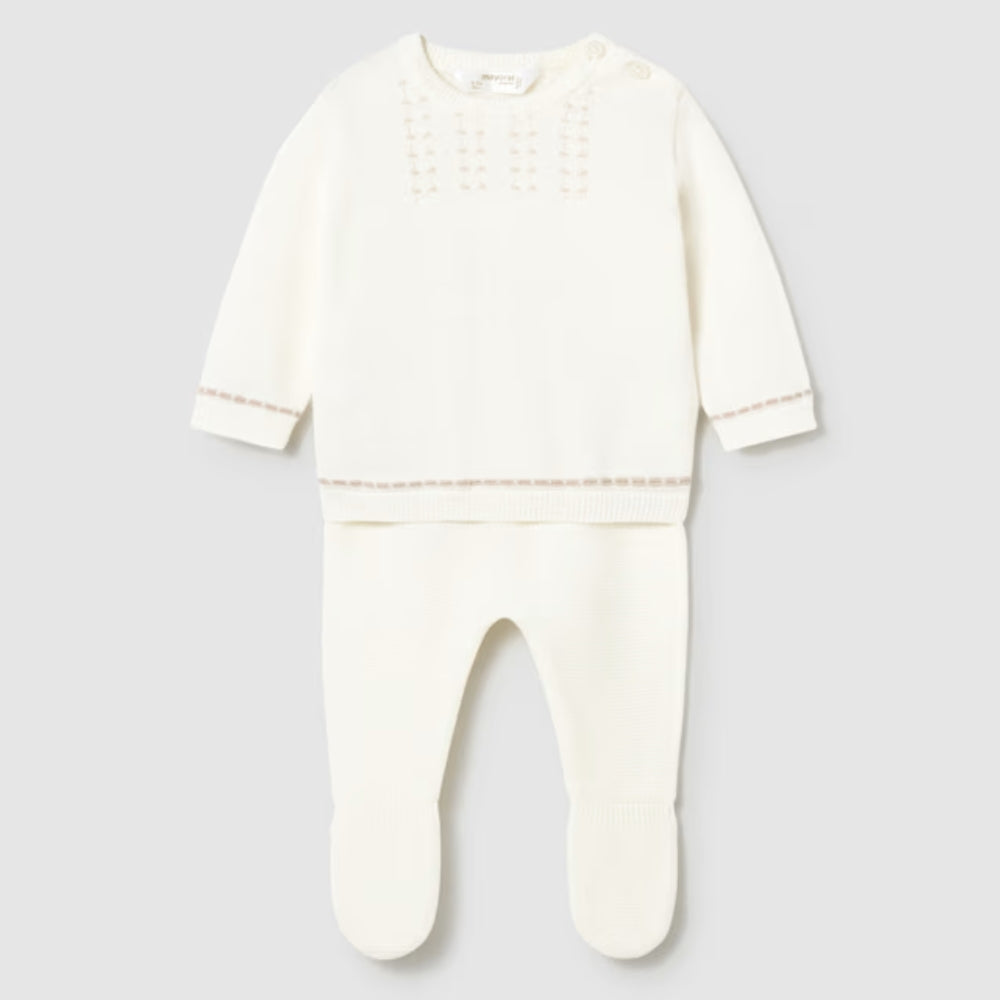 Setul pentru nou-născut Mayoral este o opțiune elegantă și confortabilă, concepută pentru primele zile ale bebelușului.