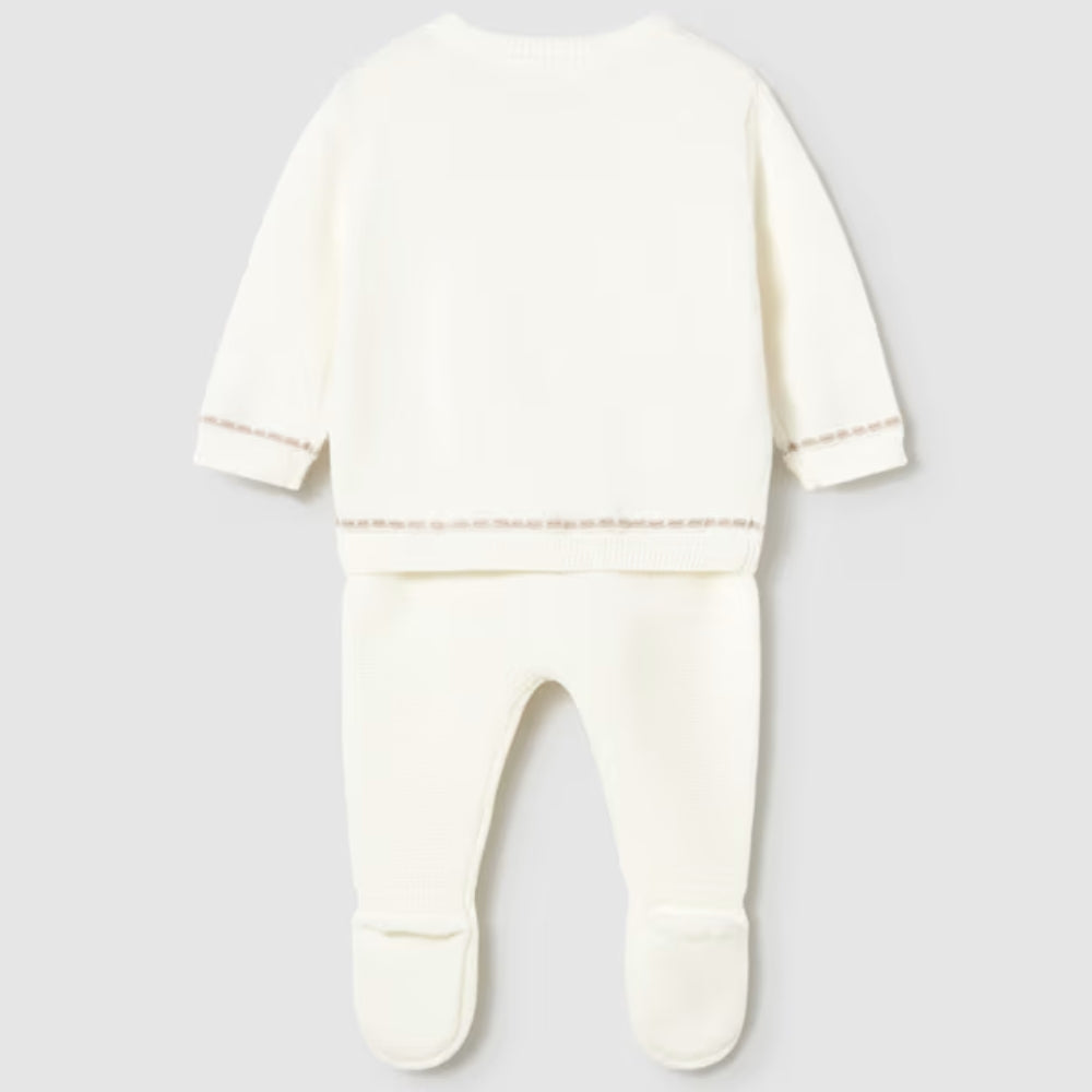 Setul, format dintr-o jumatate de culcuș și un pulover tricot, este perfect pentru purtarea zilnică sau ca parte a unei layette.