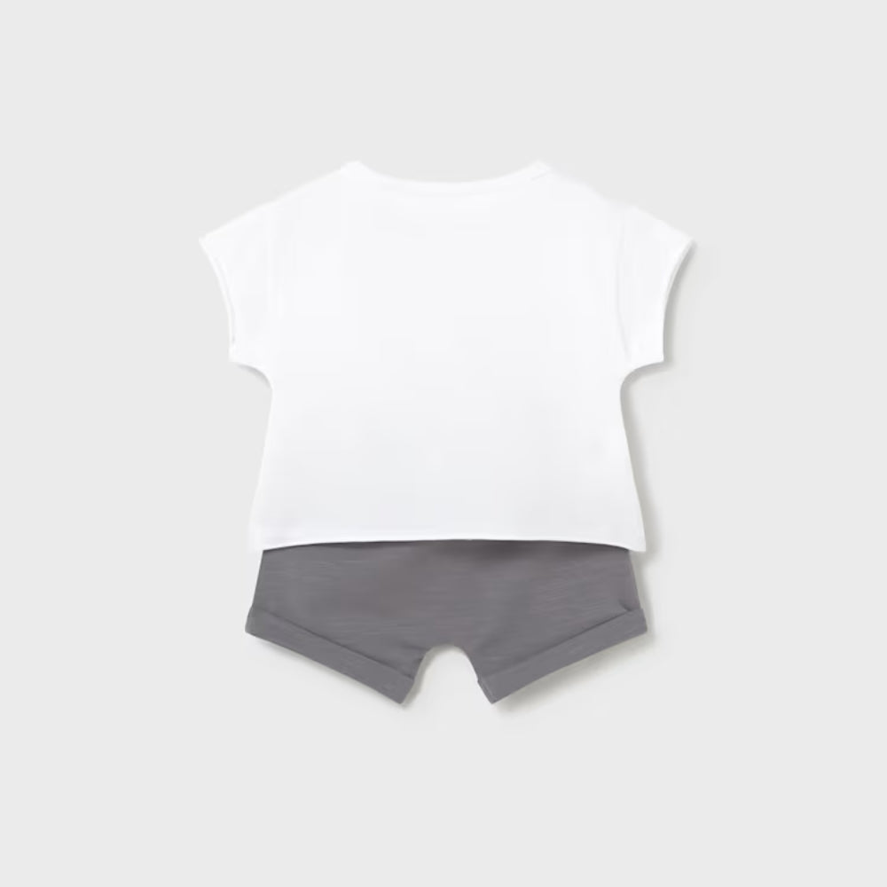 Setul Mayoral include două topuri ușoare și două perechi de pantaloni scurți, astfel încât este ușor să amestecați și să potriviți piesele în funcție de vreme.
