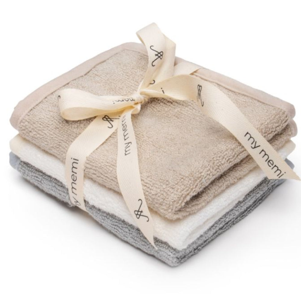 Setul de trei mini prosoape din bambus funcționale crem/gri deschis/bej de la brandul Memi este un produs pe care orice părinte îl va găsi util.