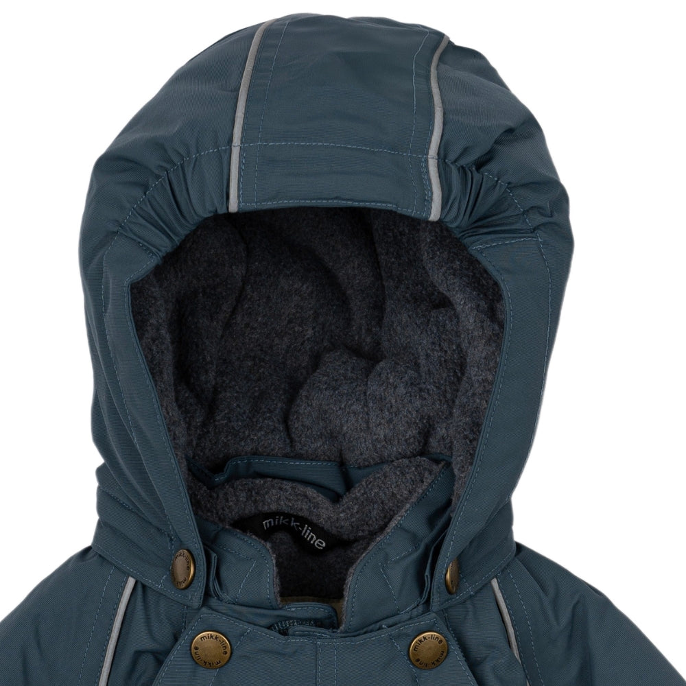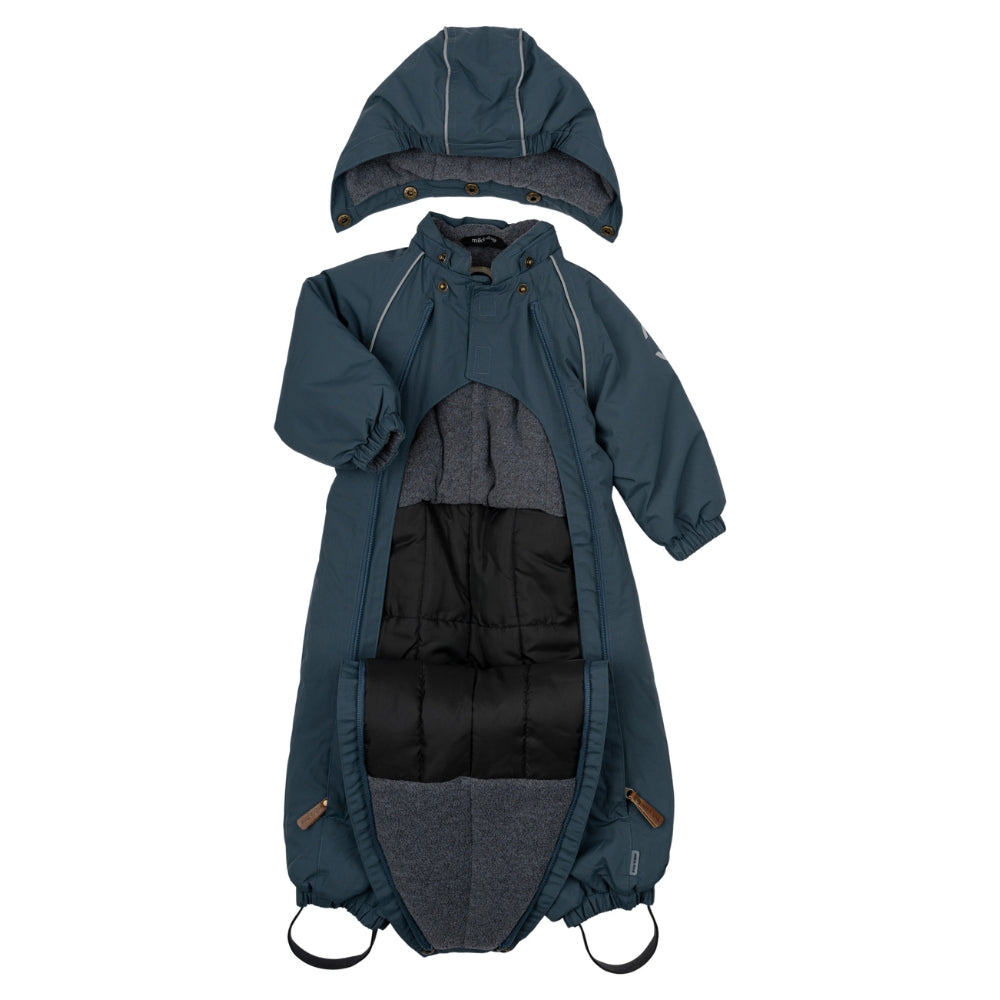 Mikk line oferă un costum pentru bebeluși care este perfect atât pentru plimbările înzăpezite, cât și pentru zilele ploioase.