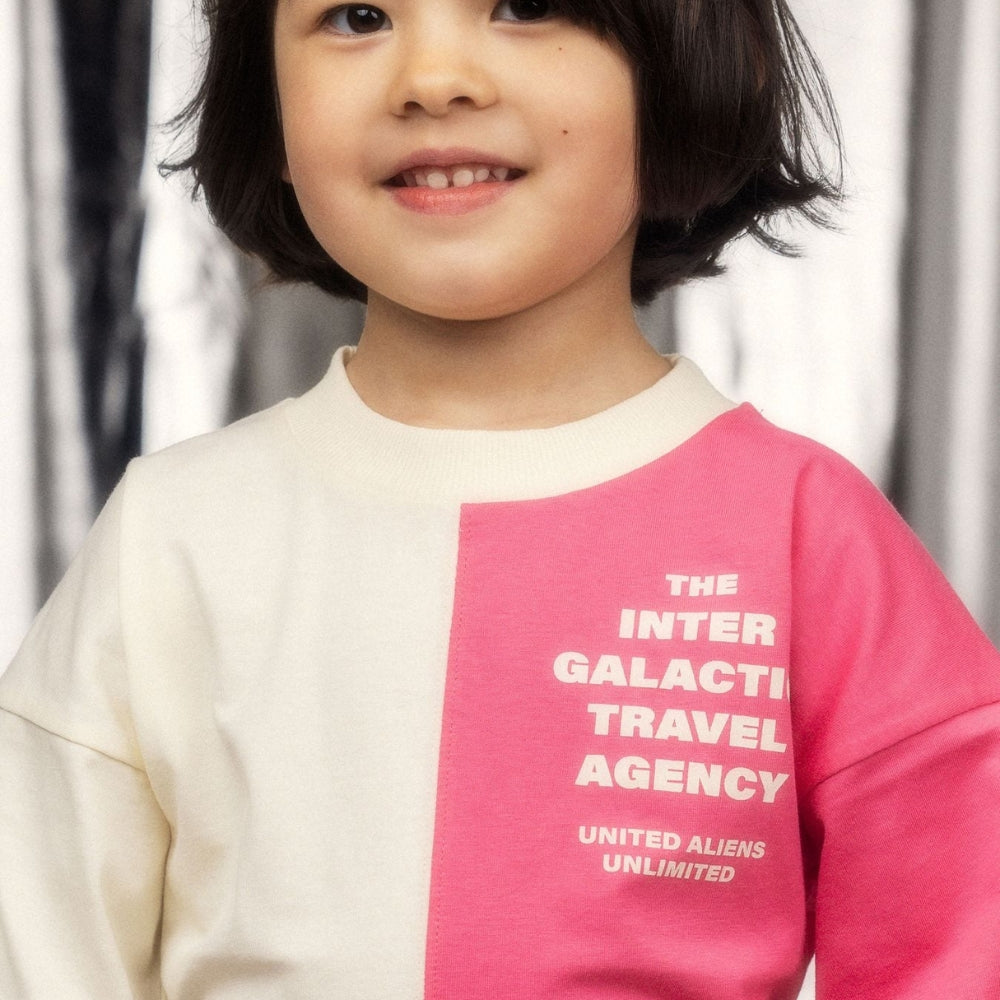 Diviziunea bicoloră atrage atenția și face din tricoul pentru copii un element de stil puternic.