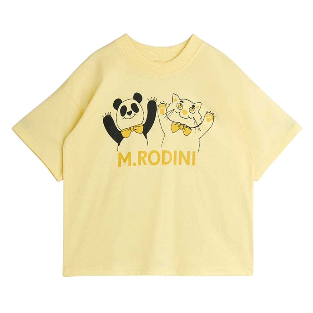Mini Rodini Tricou galben cu panda și pisică pentru copii