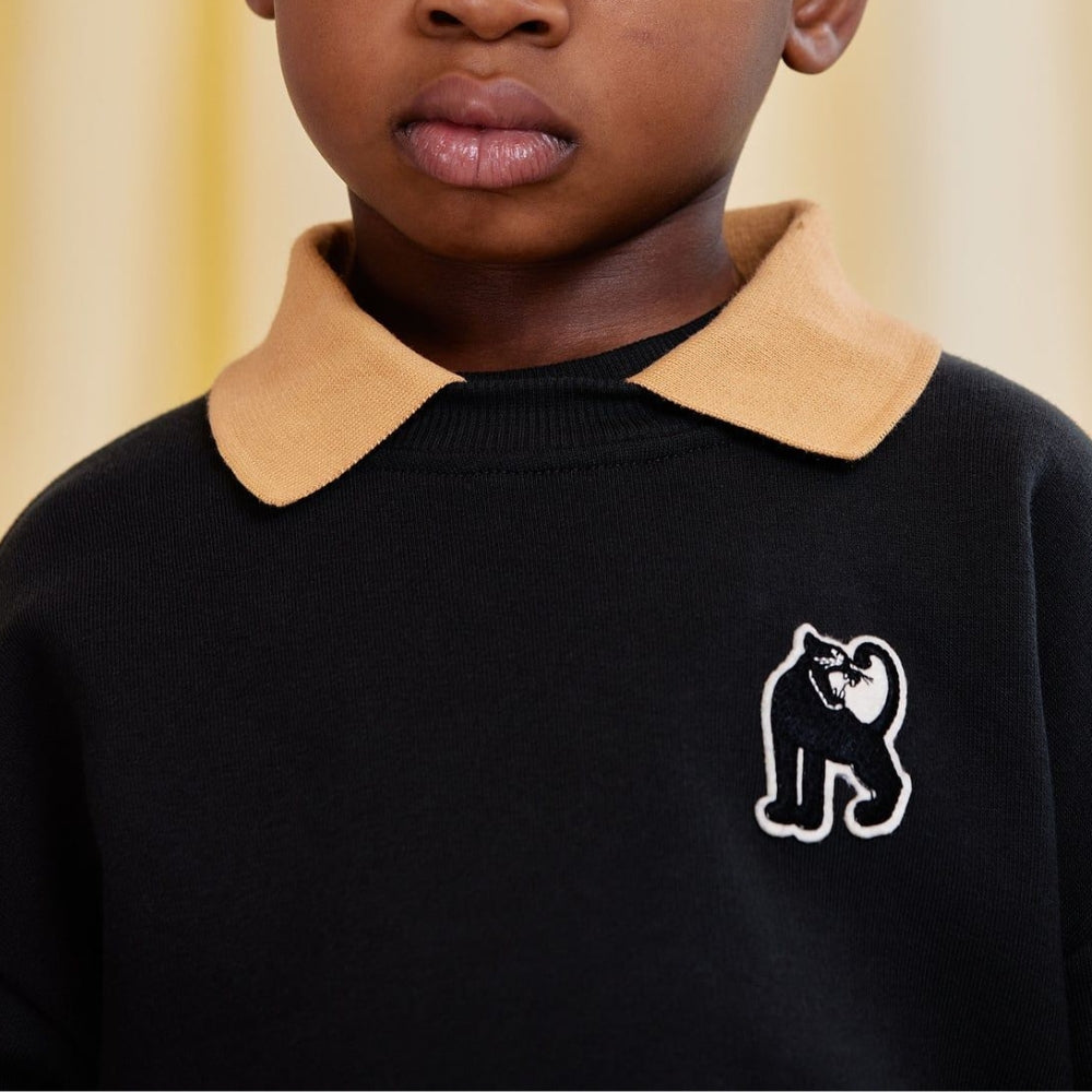 Sweatshirt-ul Mini Rodini Panther Patch este un articol de îmbrăcăminte confortabil și elegant pentru bebeluși, perfect pentru zilele mai reci.