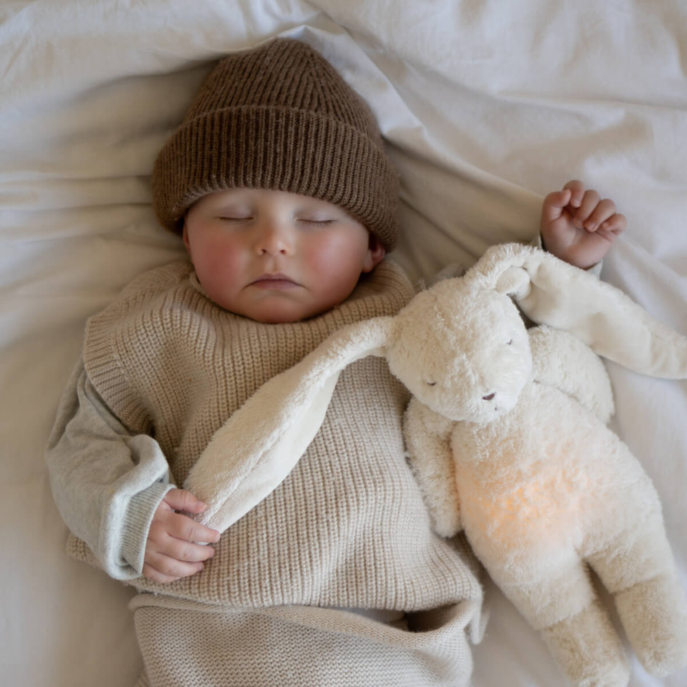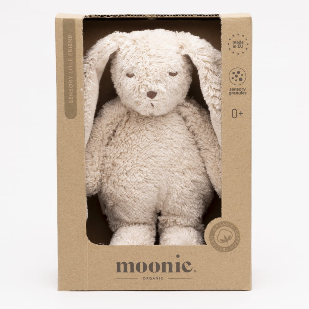 Ursulețul de pluș senzorial Moonie este primul companion perfect pentru bebeluș pentru a sprijini dezvoltarea din prima zi.