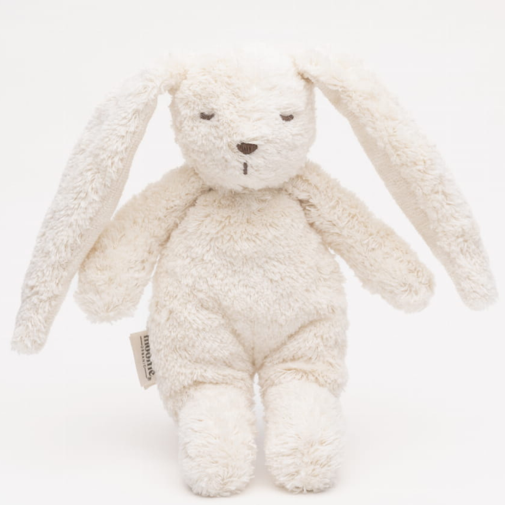 Brandul Moonie a folosit aici materiale sigure, tactile - bumbac organic și umplutură moale - astfel încât jucăria este potrivită și pentru pielea sensibilă a bebelușilor.