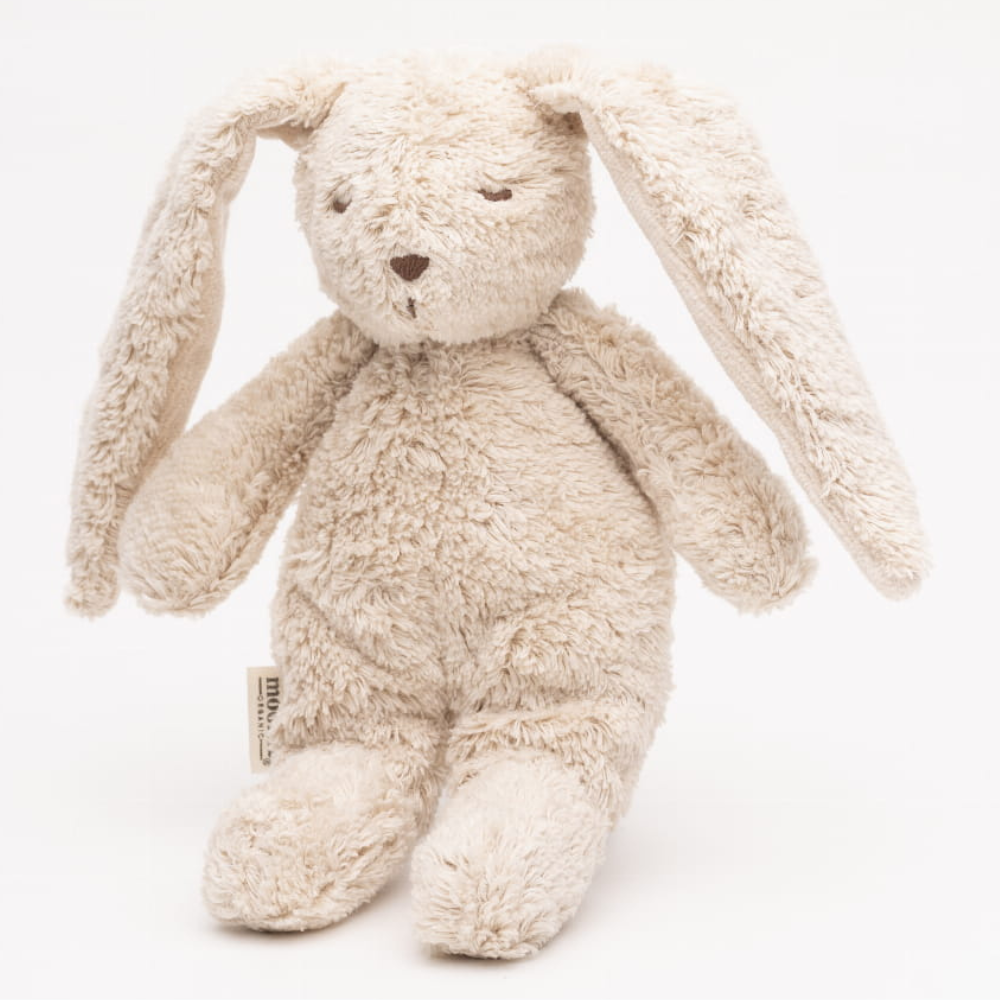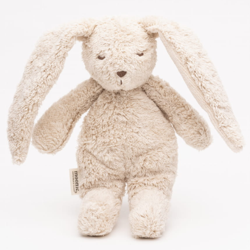 Brandul Moonie a folosit aici materiale sigure, tactile - bumbac organic și umplutură moale - astfel încât jucăria este potrivită și pentru pielea sensibilă a bebelușilor.