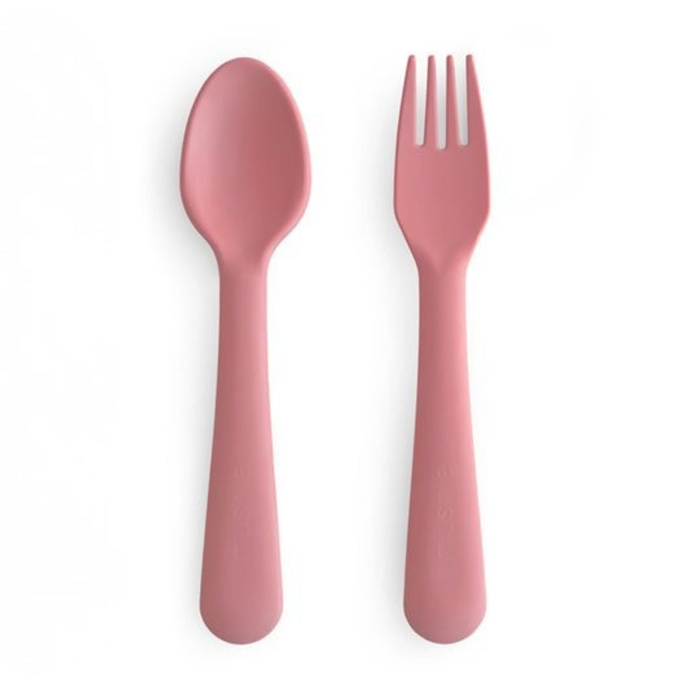 Mushie Baby Cutlery Furculiță și lingură - Dusty Rose