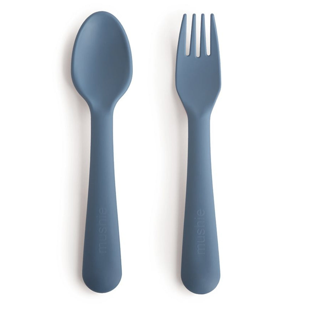 Mushie Baby Cutlery Furculiță și lingură - Twilight Blue