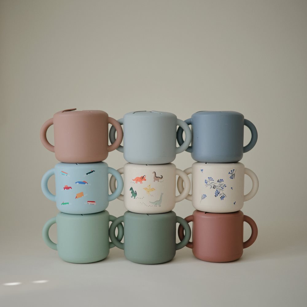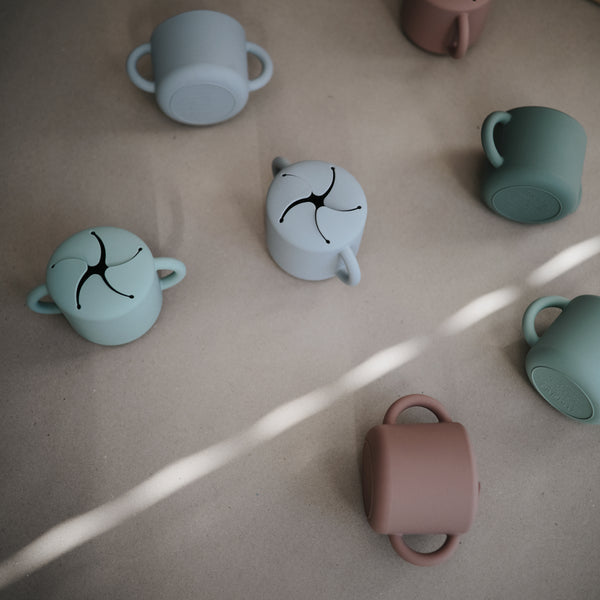 Cupa Mushie Non-Snack are, de asemenea, două urechi confortabile, pe care bebelușul tău le poate ține cu ușurință în mânuțele lui.