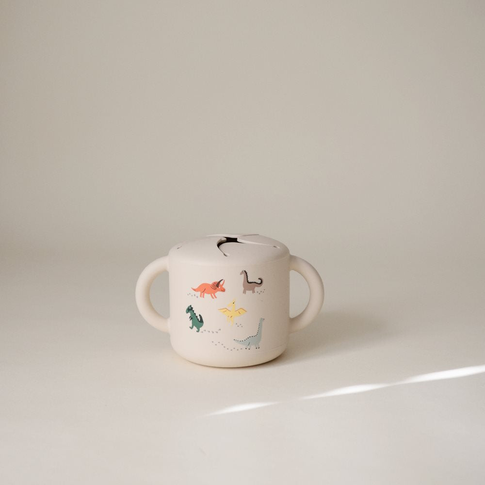 Cupa Mushie Non-Snack este un recipient unic pentru copii care încurajează mâncatul distractiv și independent.