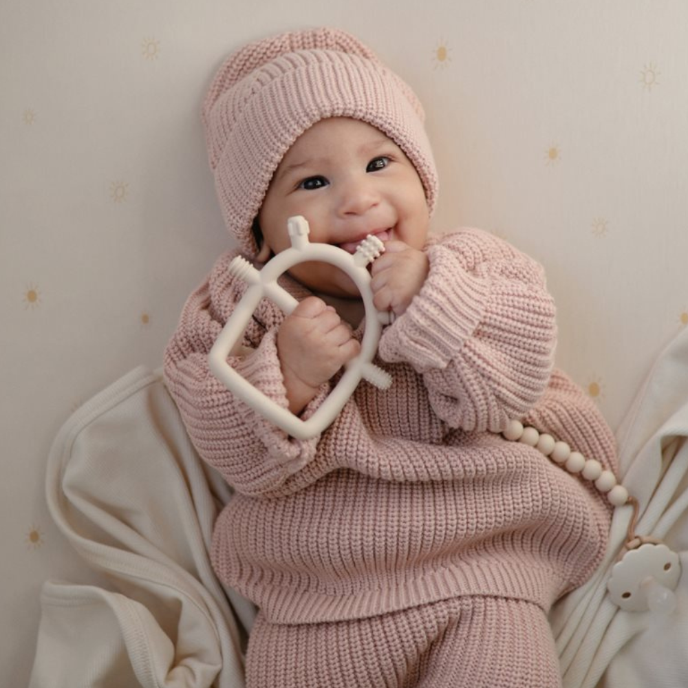 Mushie se concentrează pe forme simple, confort în utilizare și materiale în care poți avea încredere - astfel încât acest teether senzorial va funcționa bine atât acasă, cât și în deplasare.