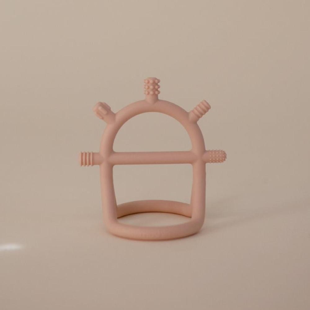 Este un teether senzorial fabricat din silicon alimentar 100% non-toxic, sigur pentru a intra în contact cu fața bebelușului.