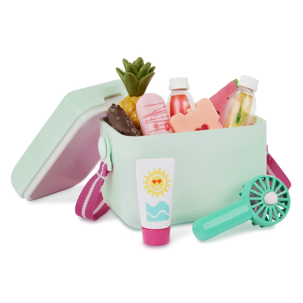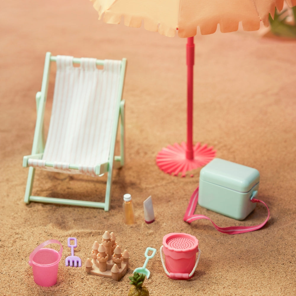 Acest set adorabil de accesorii îi va permite păpușii tale să se bucure de soare, relaxare și gustări răcoritoare - exact ca într-o vacanță adevărată!