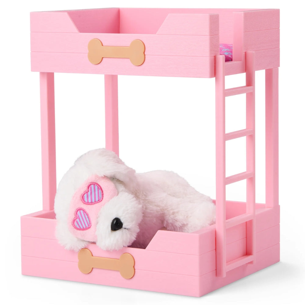 Invitați jocul creativ în cameră: patul pentru cățel de la Our Generation este un set supraetajat cu un animal de pluș și accesorii care vor încuraja îngrijirea animalului și ritualurile de seară ale copilului dumneavoastră.