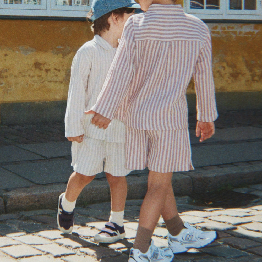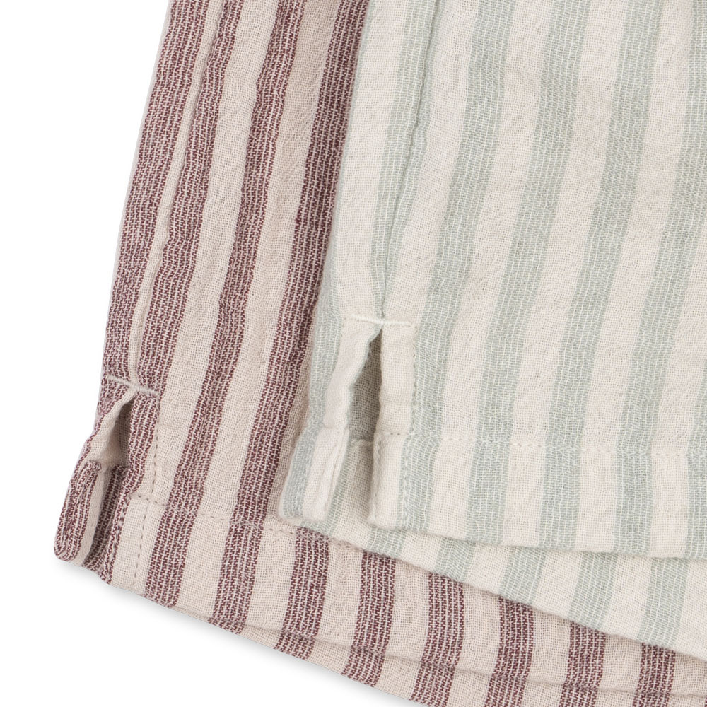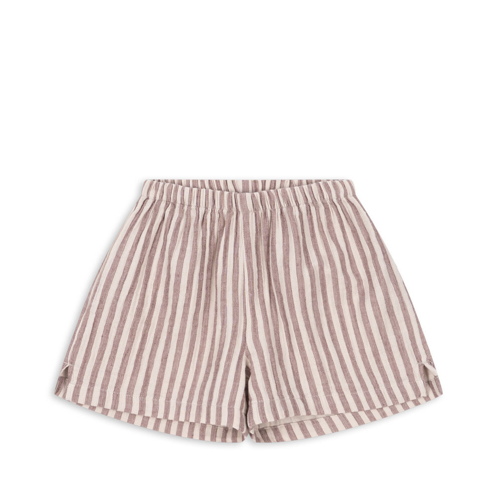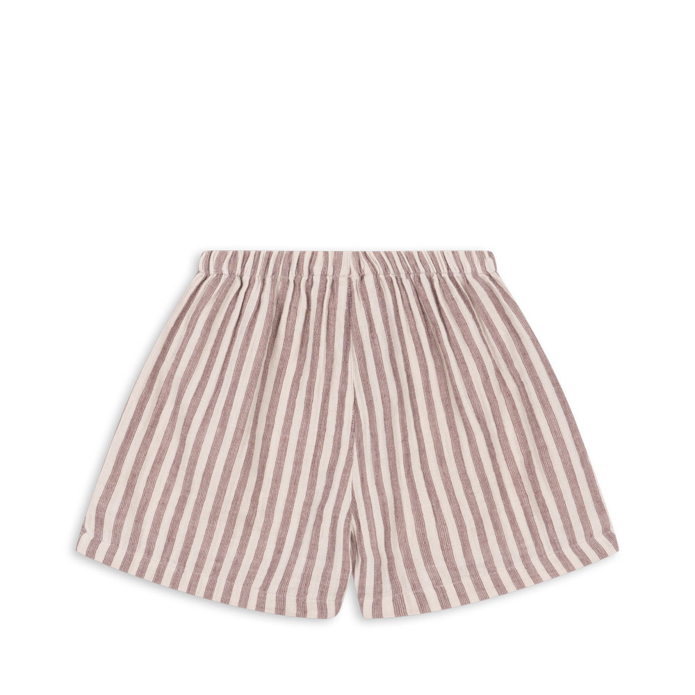 Pantalonii scurți Konges Slojd Ely realizați din muselină de bumbac organic sunt pantaloni scurți pentru copii ușori și respirabili pentru zilele călduroase. Ținuta lejeră și talia elastică asigură libertate de mișcare, în timp ce modelul cu dungi roșii adaugă o notă de vacanță.