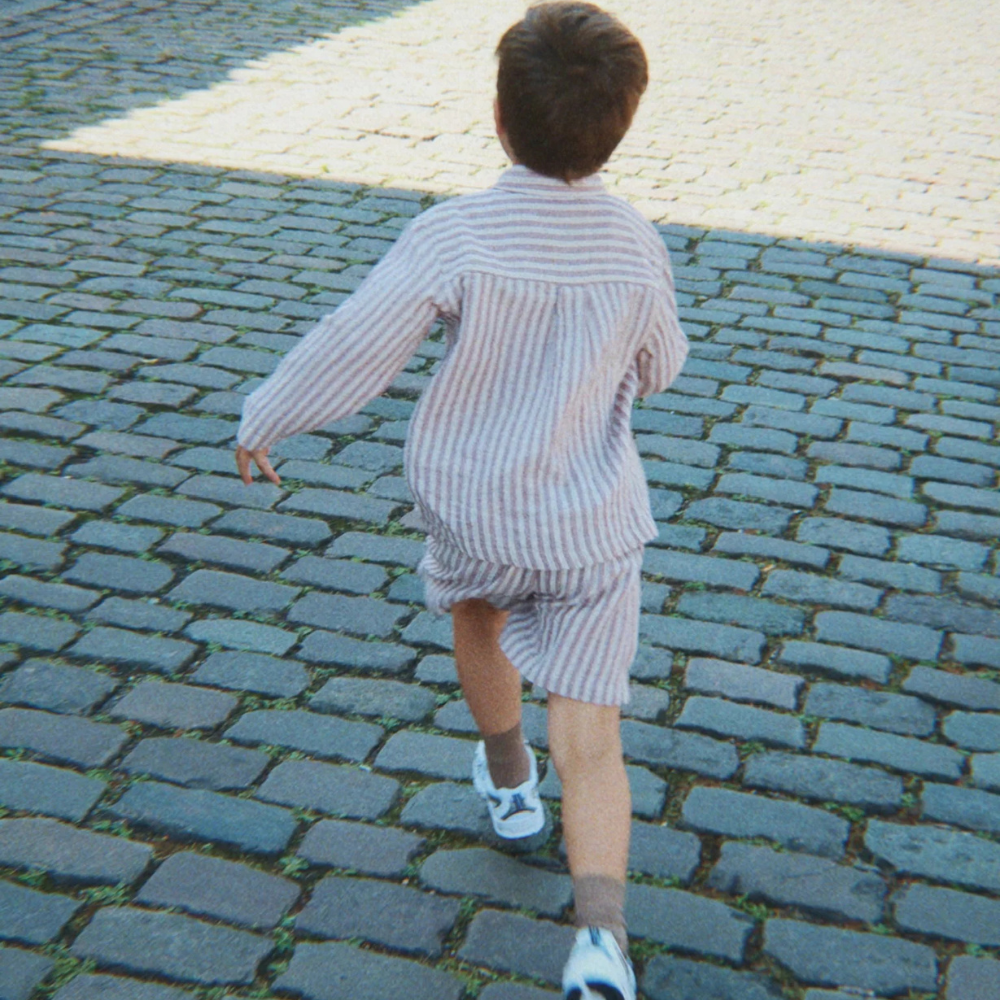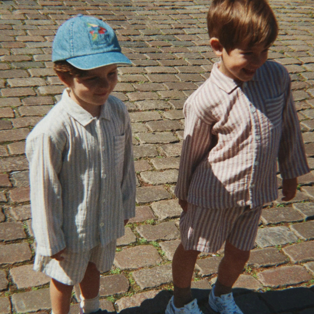 Acești pantaloni scurți pentru copii pot fi ușor combinați cu cămașa Ely asortată pentru a crea un set de vară confortabil.