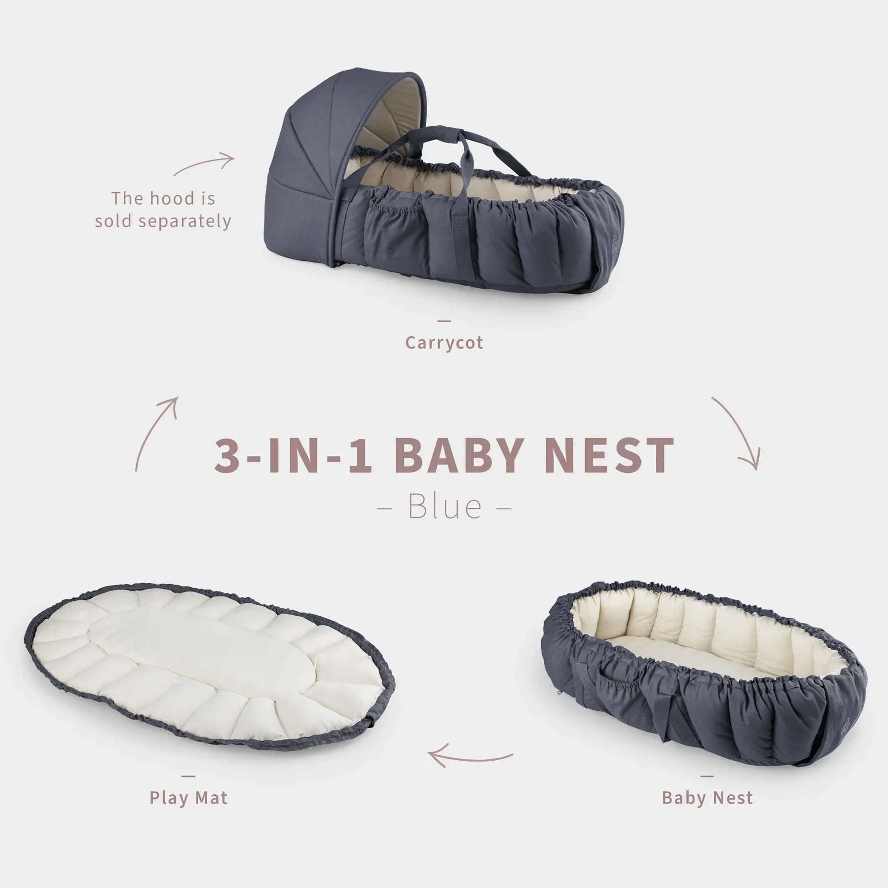 Prin detașarea laturilor, Cuibul pentru bebeluși 3 în 1 se transformă într-un covoraș de joacă mare și moale, pe care vă puteți schimba confortabil bebelușul atunci când este necesar.