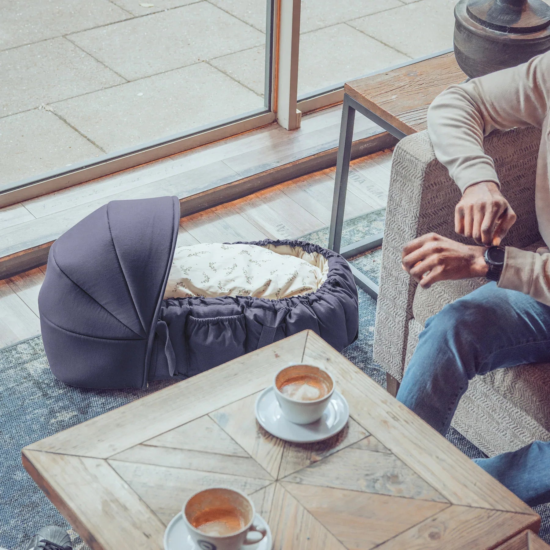 Cuibul se potrivește în cărucioare și cărucioare, astfel încât poate înlocui un coș de transport tradițional atunci când aveți nevoie de o soluție mai mobilă.