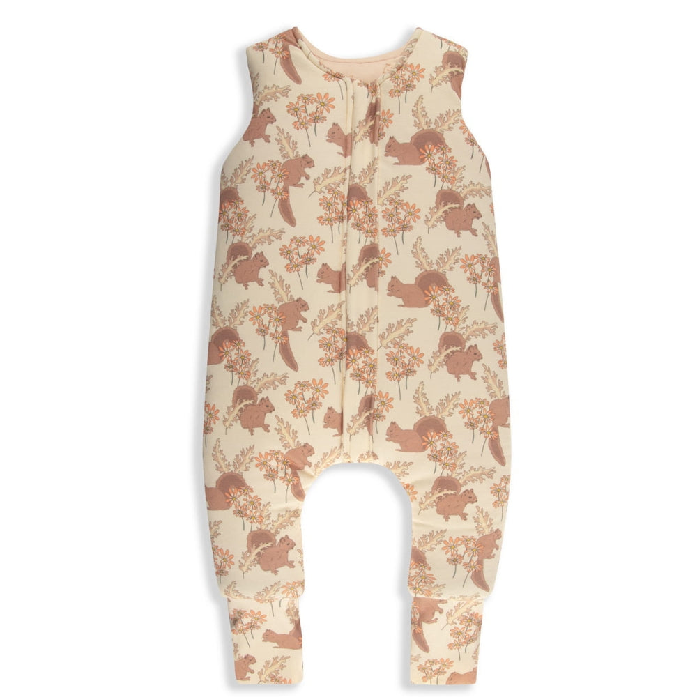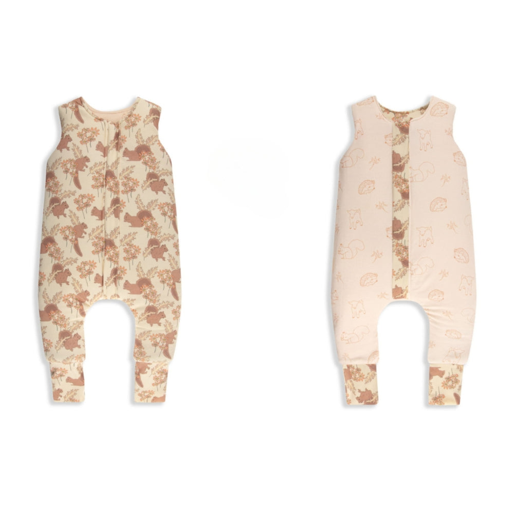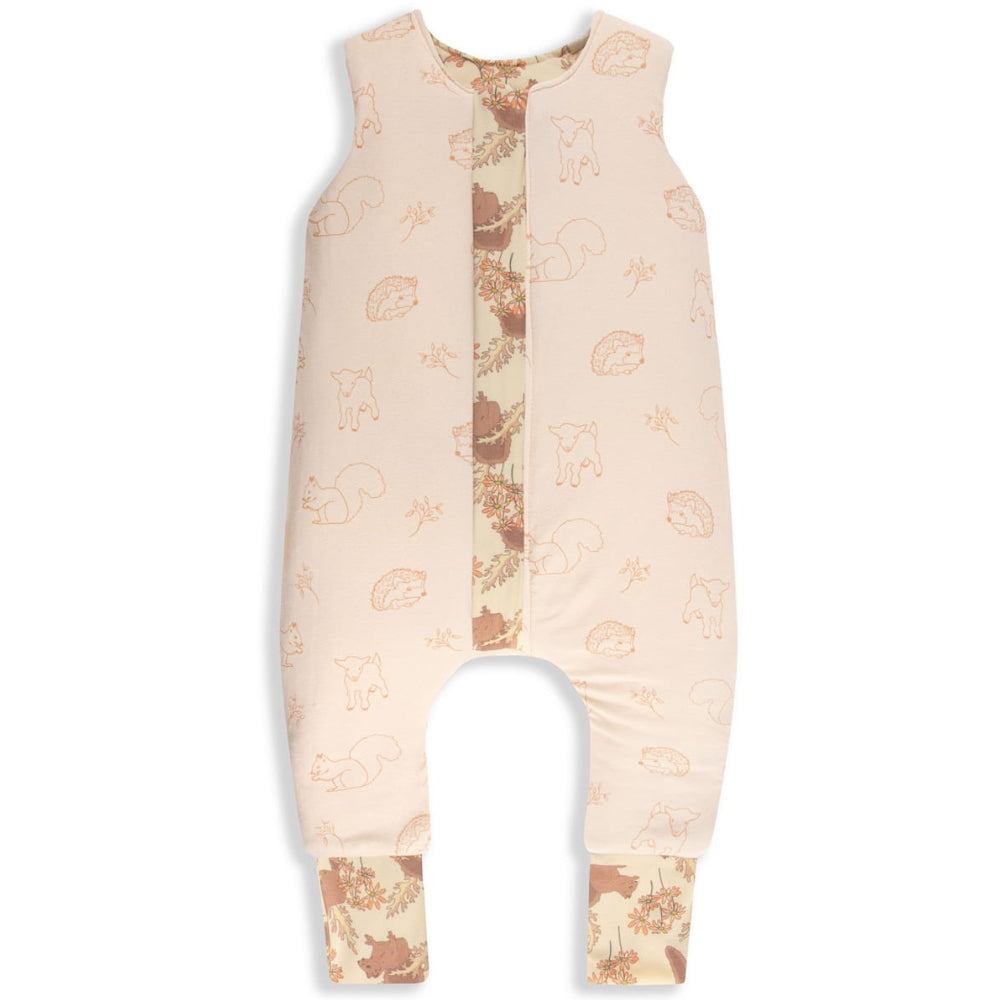 Sac de dormit inovator cu două fețe și picioare Vintage Animals Almond/Cream de la Sleepee.
