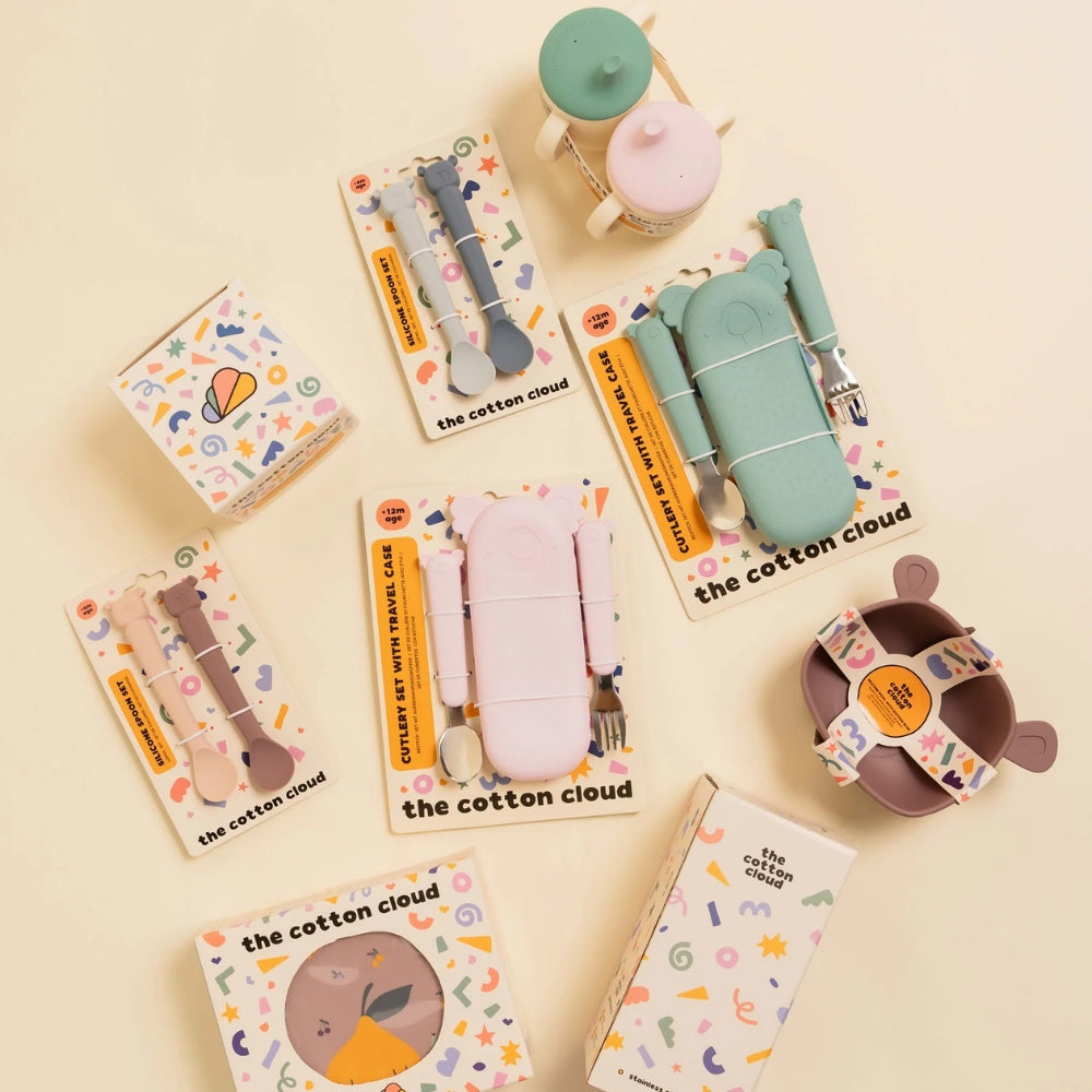 Tacâmurile pentru copii Cotton Cloud din setul Zoe the Koala fac din învățarea de a mânca independent o adevărată plăcere pentru copilul dumneavoastră.