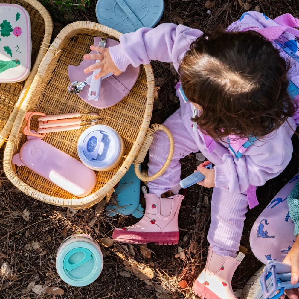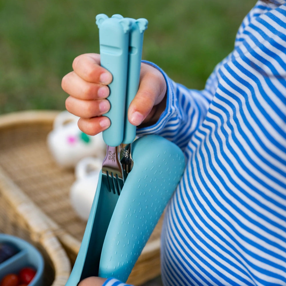 Tacâmurile pentru copii se potrivesc perfect în mâinile mici și încurajează independența la masă.