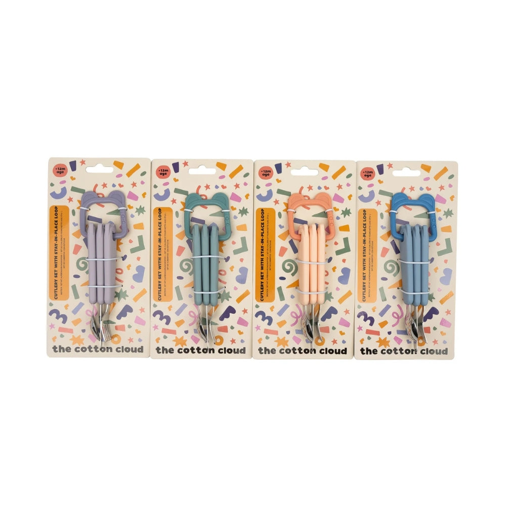 Tacâmurile pentru copii Cotton Cloud sunt un set practic pentru orice masă în oraș.