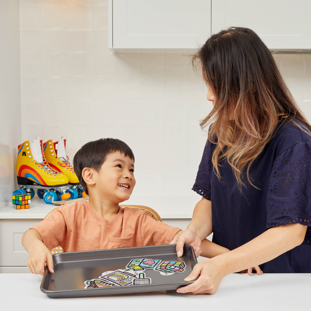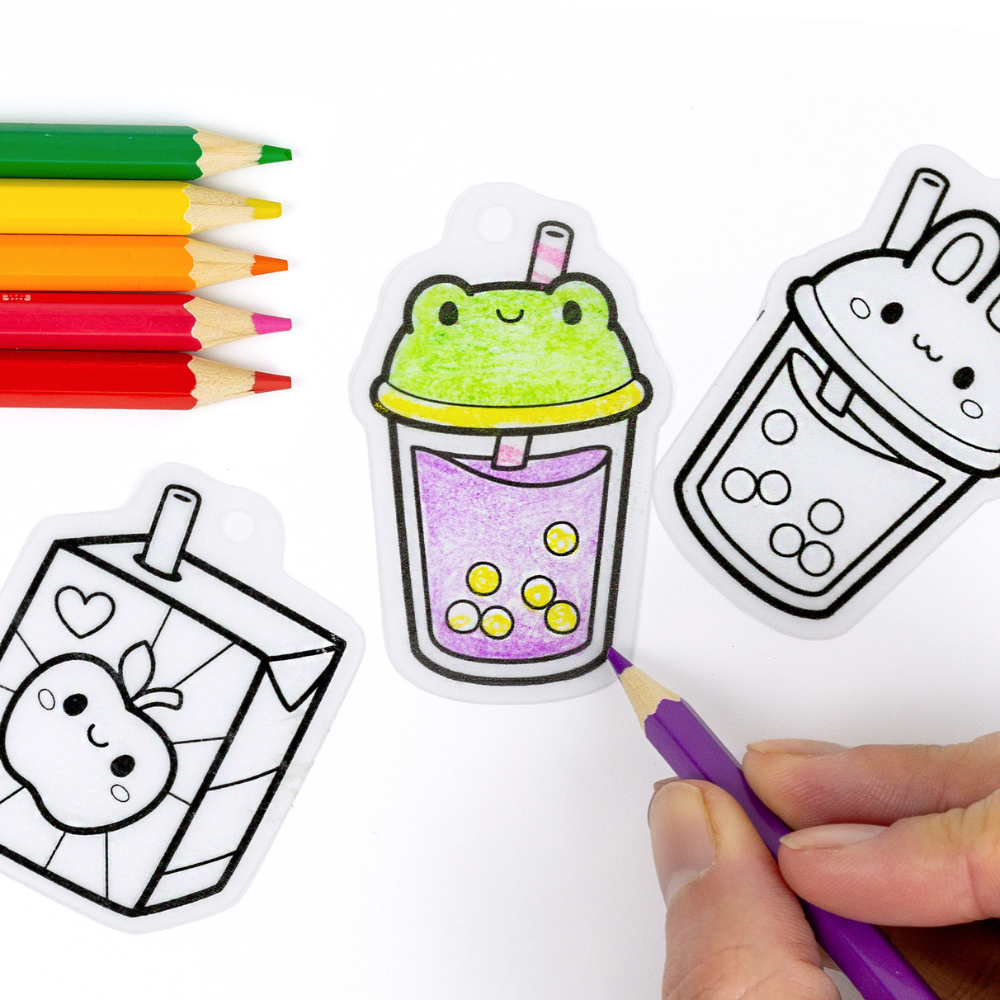 Tot ce trebuie să faceți este să colorați modelele ilustrate pretăiate, să le introduceți în cuptor și să le vedeți cum se micșorează la aproximativ 40% din dimensiunea lor inițială, iar culorile devin mai intense - o adevărată magie acasă.