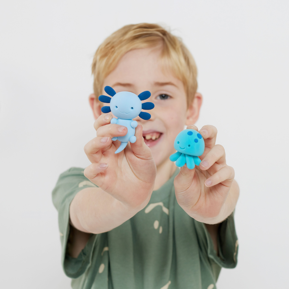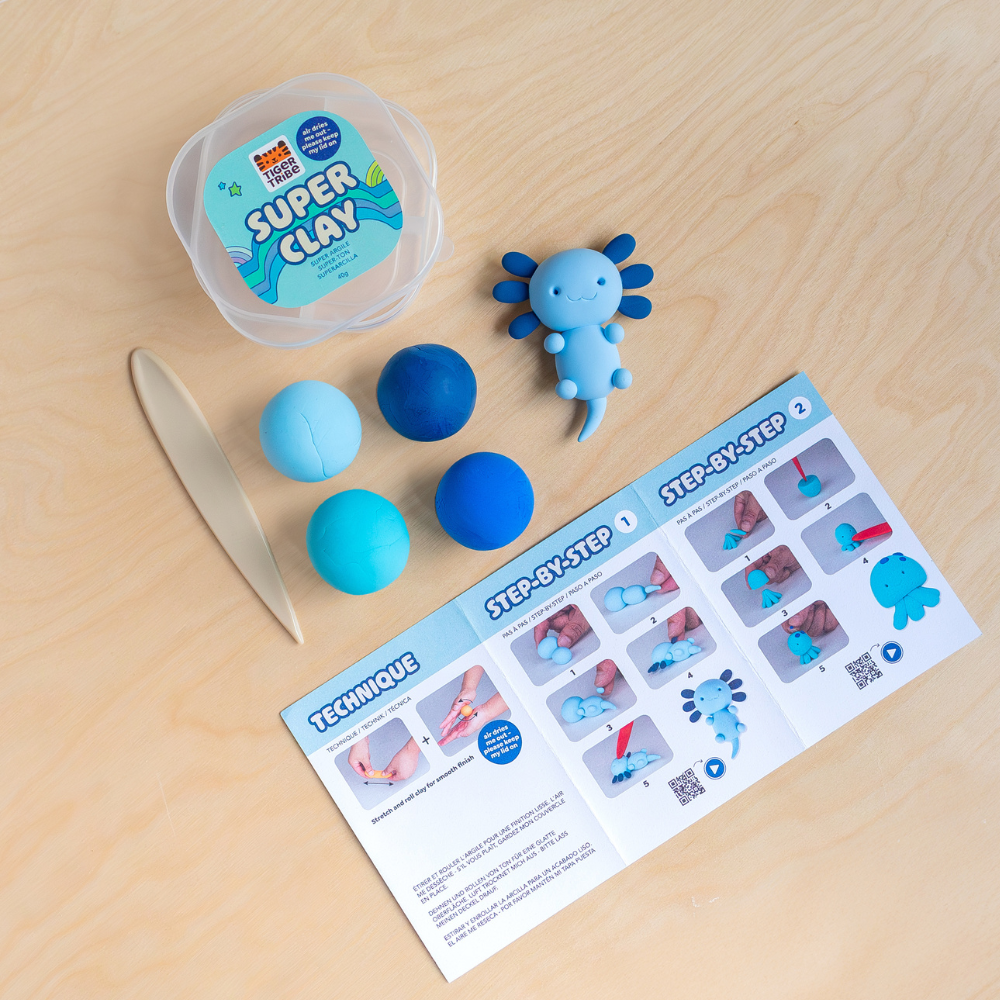 Moale, ușoară și plăcută la atingere, masa de plastic încurajează frământarea, lipirea și sculptarea - fie conform instrucțiunilor ilustrate, fie conform propriei imaginații.