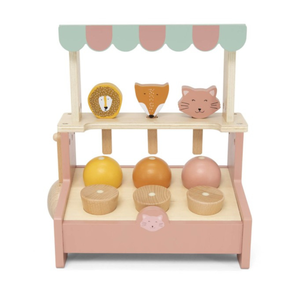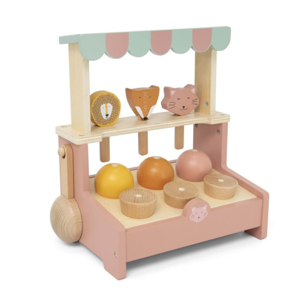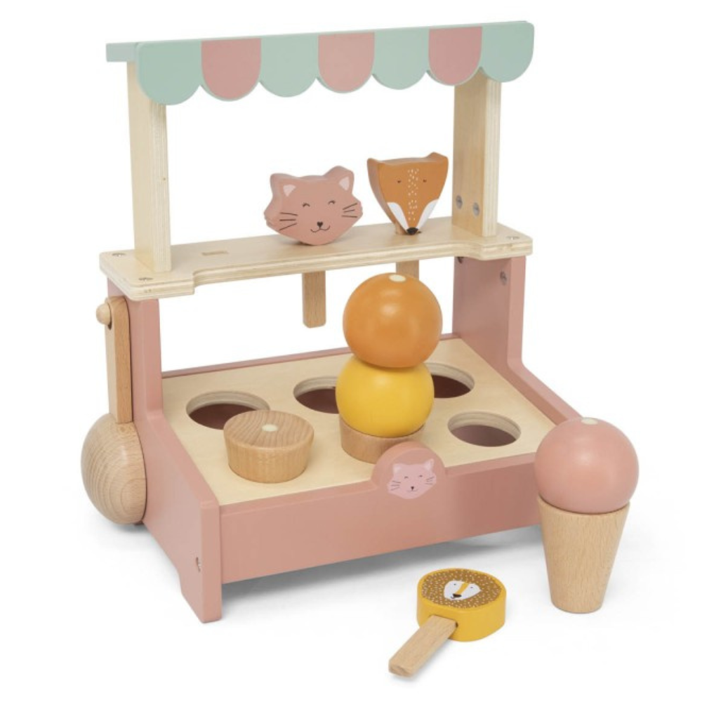 Lingurița de înghețată din lemn a lui Trixie este o invitație la un joc savuros de magazin de acasă.