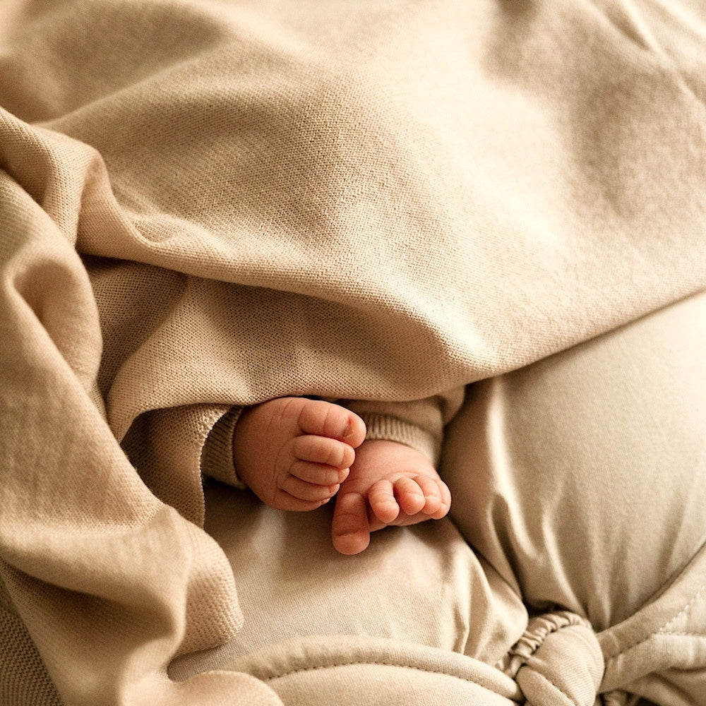 Setul din lână merinos de la Yarnami by Poofi este conceput pentru confort și moliciune încă din primele zile ale bebelușului.